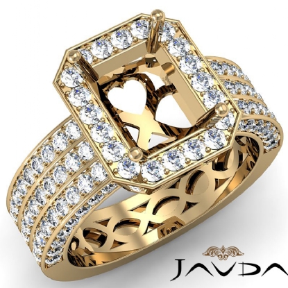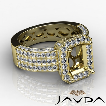 Emerald Semi Mount 3 Row Diamond Engagement Ring 14k Gold Halo Set (1.38Ct. tw.)