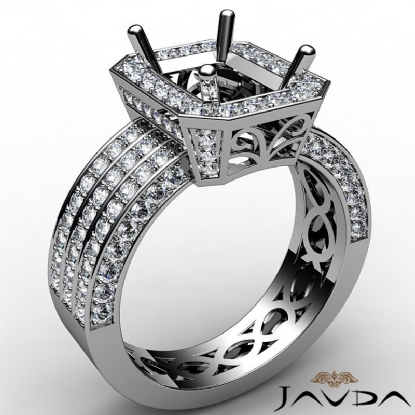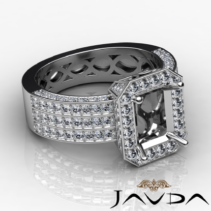 Emerald Semi Mount 3 Row Diamond Engagement Ring 18k W Gold Halo Set (1.38Ct. tw.)