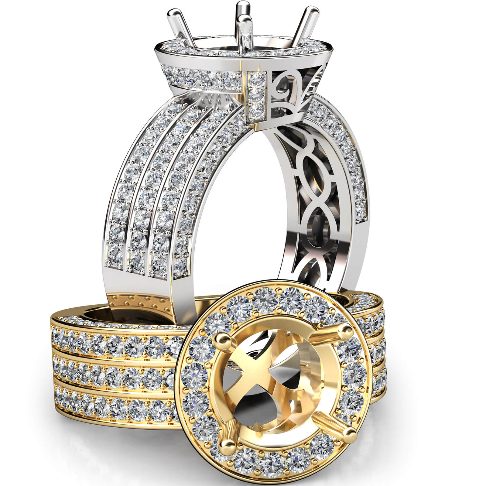 Halo Setting 3 Row Diamond Engagement Round SemiMount Ring 18k W Gold (1.35Ct. tw.)