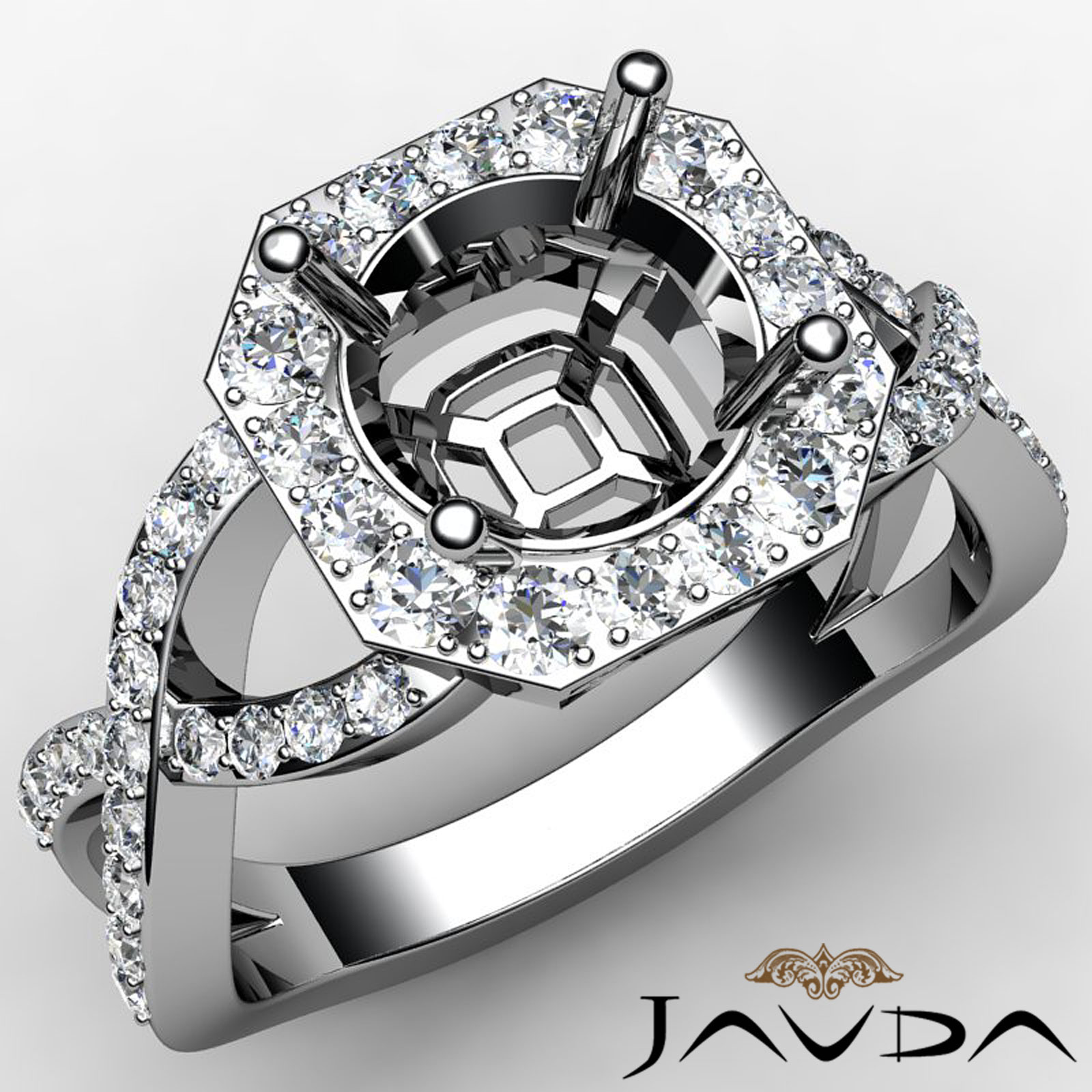 Diamond Engagement Round Semi Mount Ring Platinum Split-Curve Shank (0.63Ct. tw.)