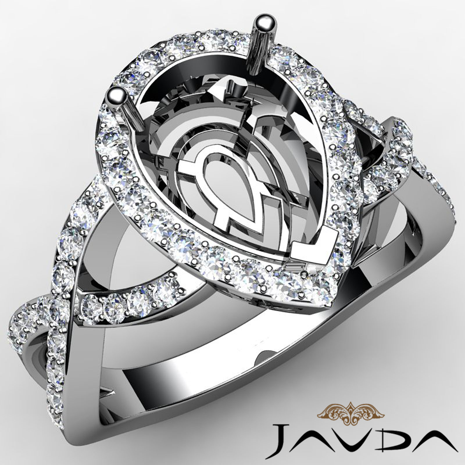 Split-Curve Shank Diamond Engagement Pear Semi Mount Ring 18k W Gold (0.72Ct. tw.)