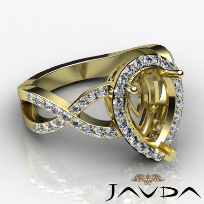 This strikingly sophisticated 18k Gold Yellow engagement ring showcases a pear semi mount, with of sparkling pave set round diamonds in halo & along the shank. (0.72Ct. tw.)