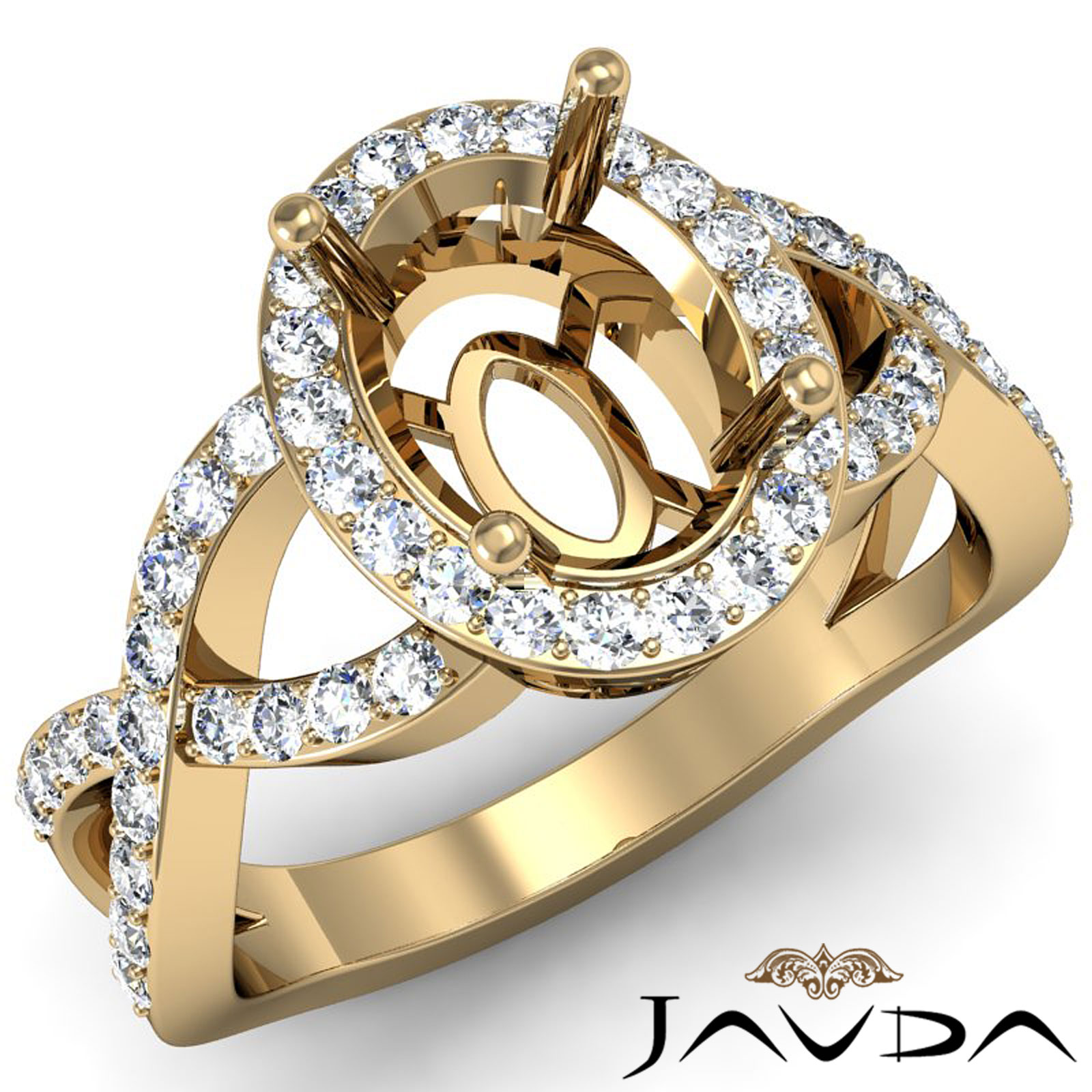 Oval Diamond Engagement Semi Mount Split-Curve Shank Ring 14k Gold (0.6Ct. tw.)