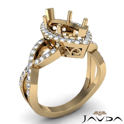 Alluring in every way, this intricate 14k Gold Yellow engagement ring showcases a marquise semi mount, with of pave set round diamonds in halo & along the criss-cross shank. (0.75Ct. tw.)