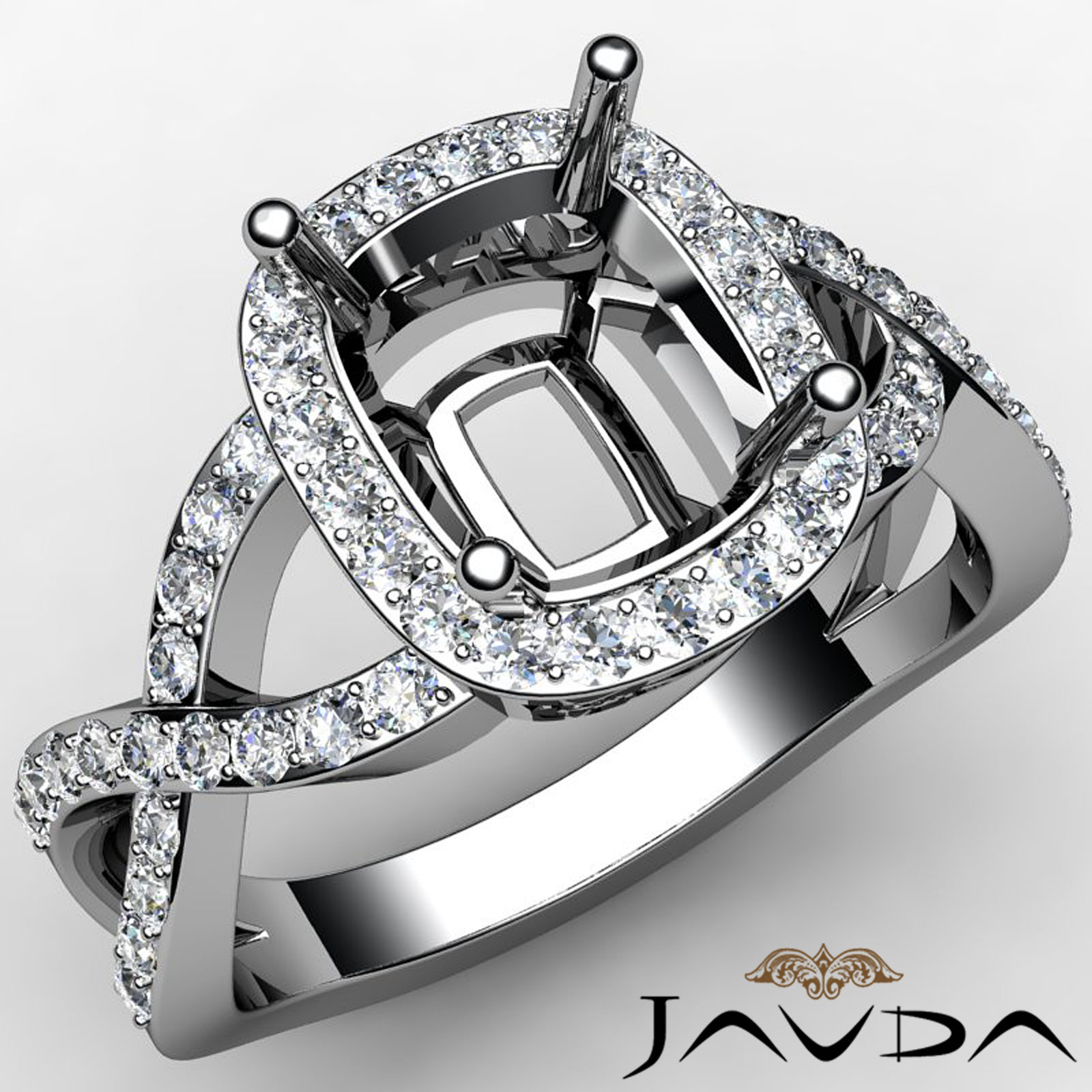 Diamond Engagement Cushion Semi Mount Ring 18k W Gold Split-Curve Shank (0.63Ct. tw.)