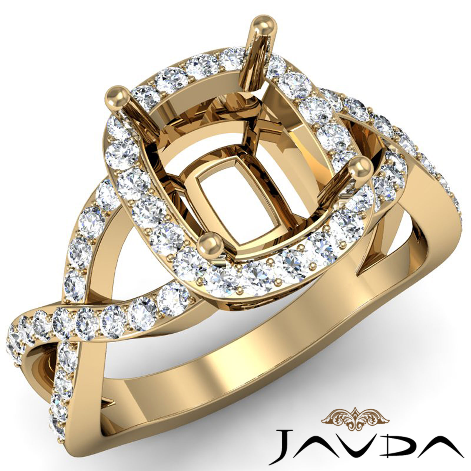 Diamond Engagement Cushion Semi Mount Ring 18k Gold Split-Curve Shank (0.63Ct. tw.)
