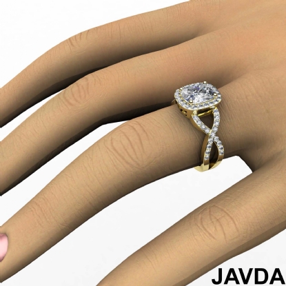 Elegant in its simplicity, this classic yet striking 18k Gold Yellow diamond engagement ring showcases an asscher semi mount, with of pave set round diamonds in halo & along the shank. (0.65Ct. tw.)