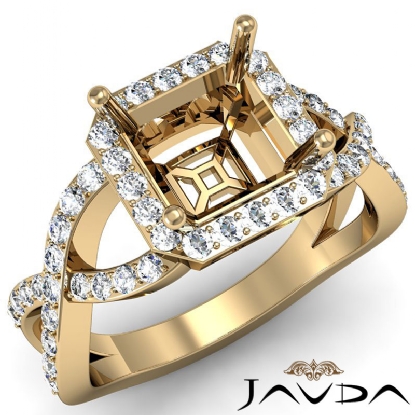 Asscher Semi Mount Diamond Engagement Ring 18k Gold Split-Curve Shank (0.65Ct. tw.)