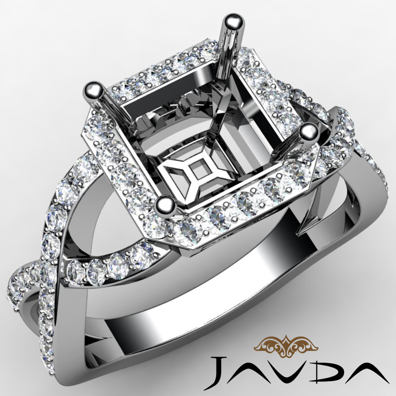 Asscher Semi Mount Diamond Engagement Ring Platinum Split-Curve Shank (0.65Ct. tw.)