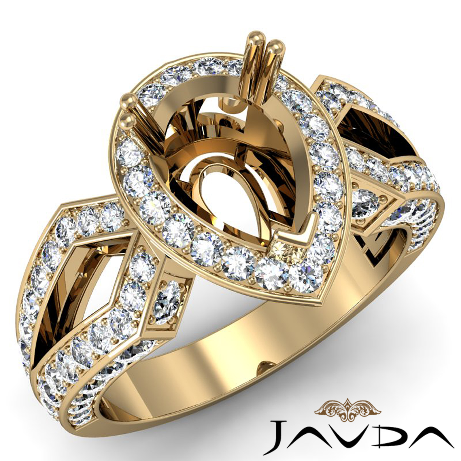Pear Cut Halo Setting Diamond Engagement Ring Semi Mount 18k Gold (1.35Ct. tw.)