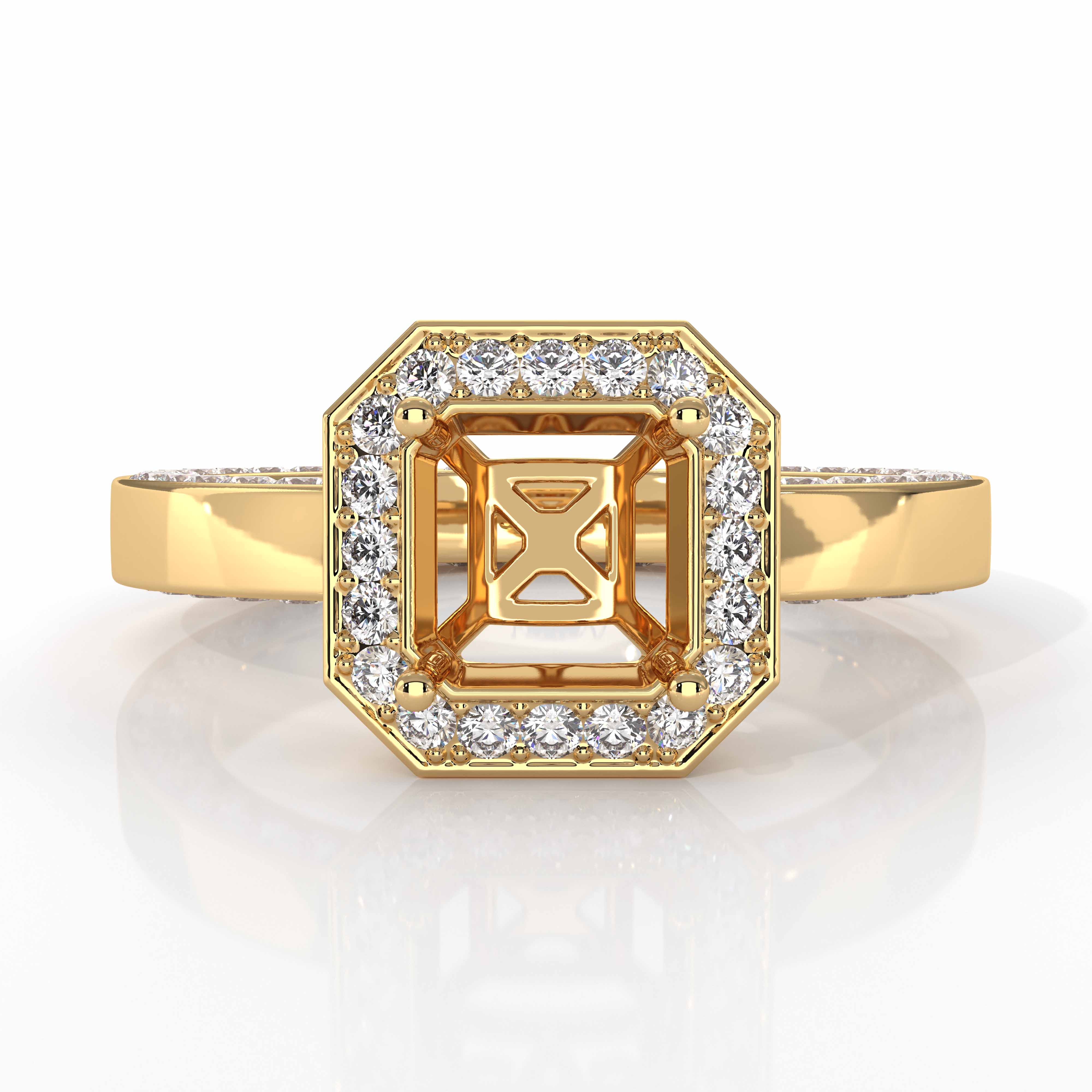 Lavishly romantic, this asscher semi mount diamond engagement ring is made in enduring 18k Gold Yellow. It showcases of round pave set diamonds sparkling in halo & along the shank. (1.42Ct. tw.)