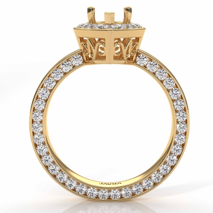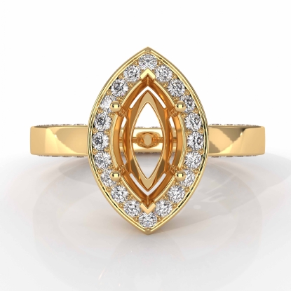Take romance to new heights, with this vintage semi mount marquise diamond engagement ring made in 14k Gold Yellow. It features of round pave set diamonds in halo & along the shank. (1.5Ct. tw.)