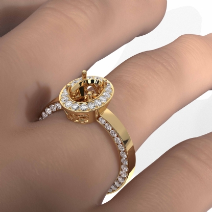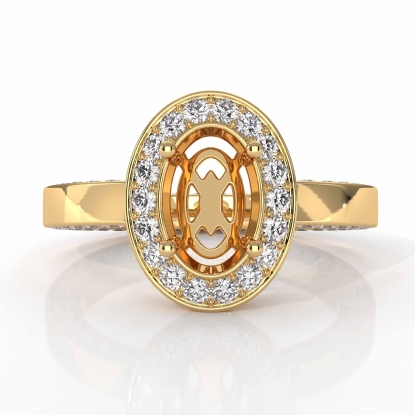 Love in all its brilliance, this oval semi mount diamond engagement ring is made in enduring 14k Gold Yellow. It features of sparkling pave set round diamonds in halo & along the shank. (1.45Ct. tw.)