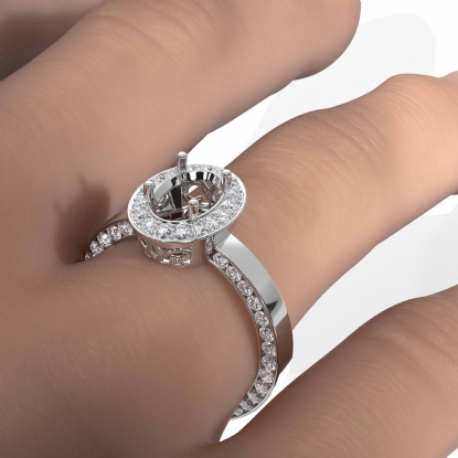 Love in all its brilliance, this oval semi mount diamond engagement ring is made in enduring Platinum 950. It features of sparkling pave set round diamonds in halo & along the shank. (1.45Ct. tw.)