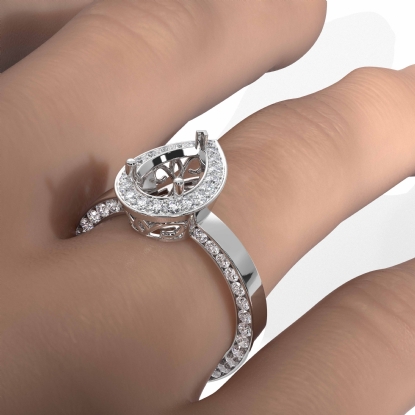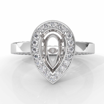 Diamond Engagement Pear Cut Semi Mount Pave Ring Setting 18k W Gold (1.55Ct. tw.)