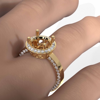 Round Cut Semi Mount Pave Setting Diamond Engagement Ring 18k Gold (1.33Ct. tw.)