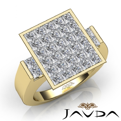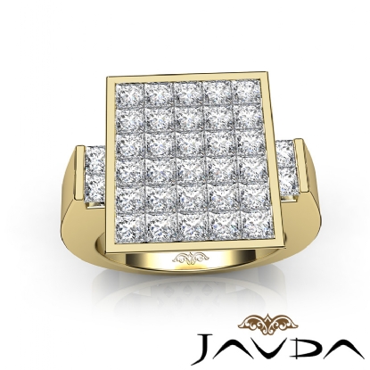 Princess Cut Diamond Invisible Set for Men Diamond Ring Fashion Band made in 14k Gold Yellow. (3Ct. tw.)