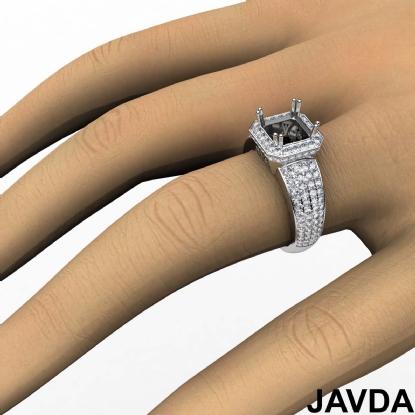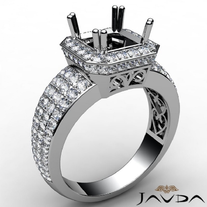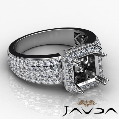 Diamond Engagement Ring Asscher Semi Mount Platinum Halo Pave Setting (2Ct. tw.)