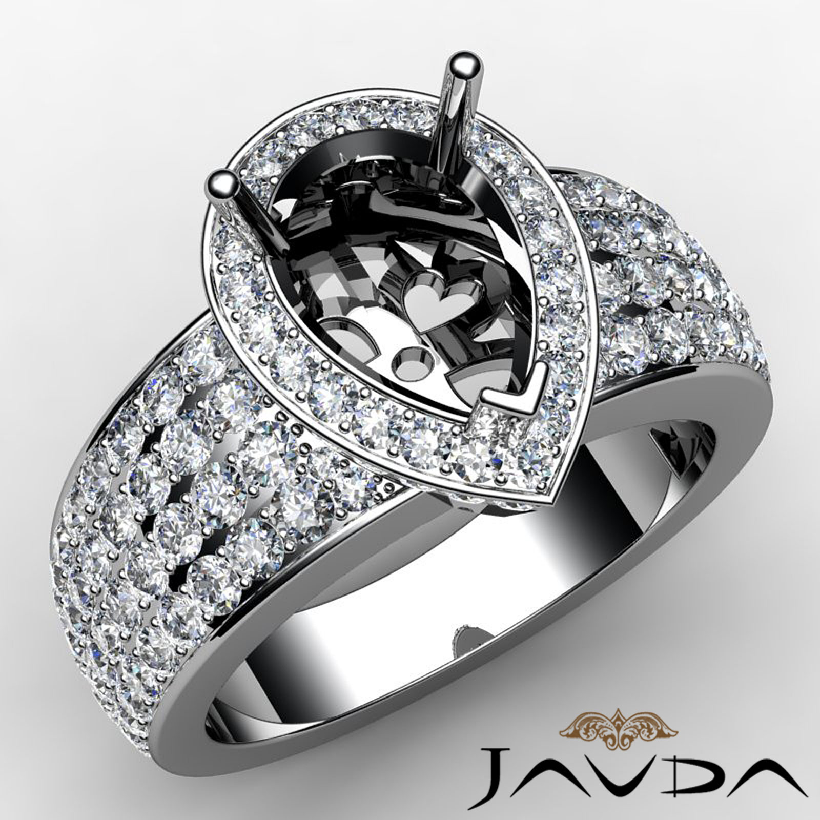 Halo Pre-Set Diamond Engagement Elegant Ring Pear Semi Mount 18k W Gold (2Ct. tw.)