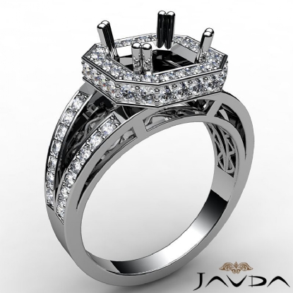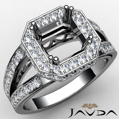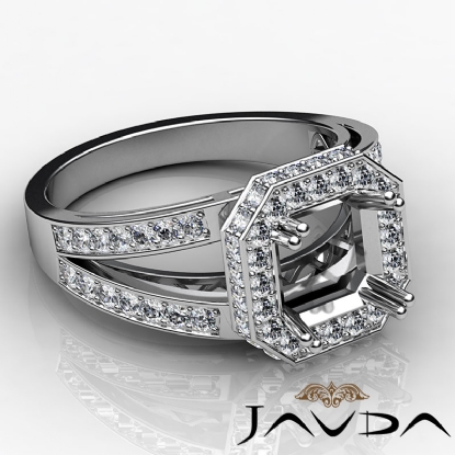 Halo Pave Set Diamond Engagement Ring Asscher Semi Mount Platinum (0.63Ct. tw.)