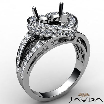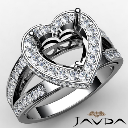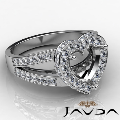 Pave Set Diamond Engagement Bridal Ring Heart Semi Mount 18k W Gold (0.72Ct. tw.)
