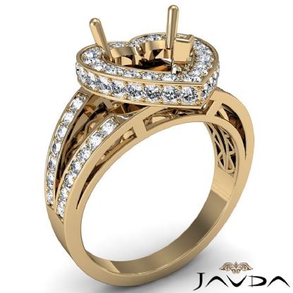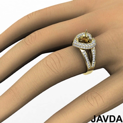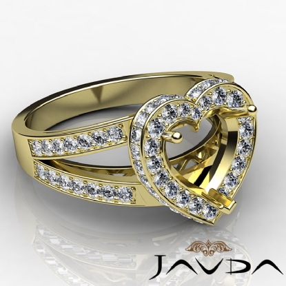 Pave Set Diamond Engagement Bridal Ring Heart Semi Mount 18k Gold (0.72Ct. tw.)