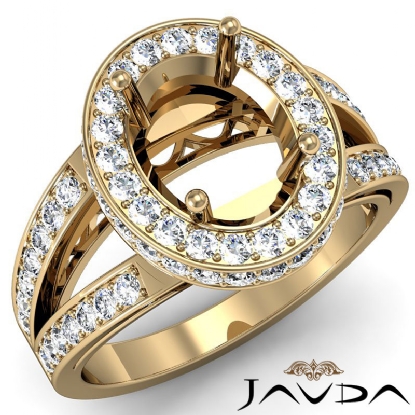 Diamond Engagement Halo Pre-Set Solid Ring Oval Semi Mount 14k Gold (0.74Ct. tw.)