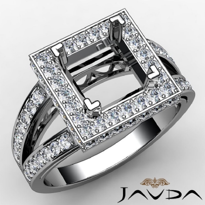 Diamond Engagement Halo Pave Setting Princess Semi Mount Ring 18k W Gold (0.65Ct. tw.)
