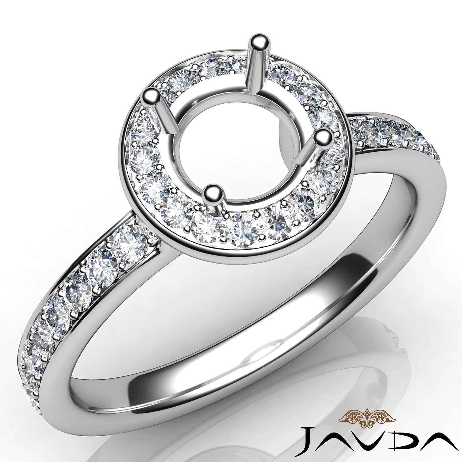 Side 0.45 ctw. Round Diamond Round Diamond Women Engagement & Anniversary Ring made in Platinum 950. Diamonds are set in Halo Pave Setting for Round Cut in a Semi Mount. (0.45Ct. tw.)