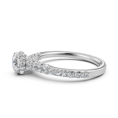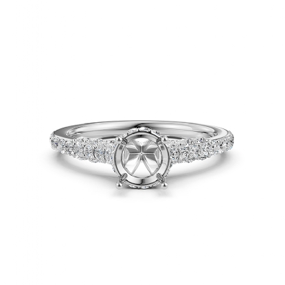 Diamond Engagement Pave Setting Platinum Round Cut Semi Mount Ring (0.65Ct. tw.)