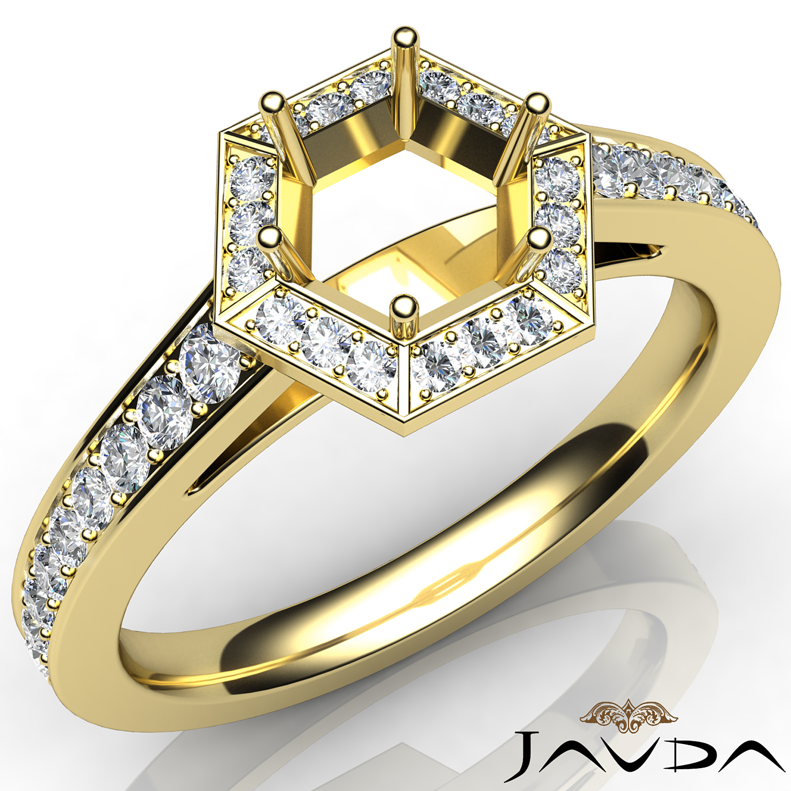 Hexagon Pave Setting Diamond Engagement Round Semi Mount Ring 18k Gold (0.5Ct. tw.)
