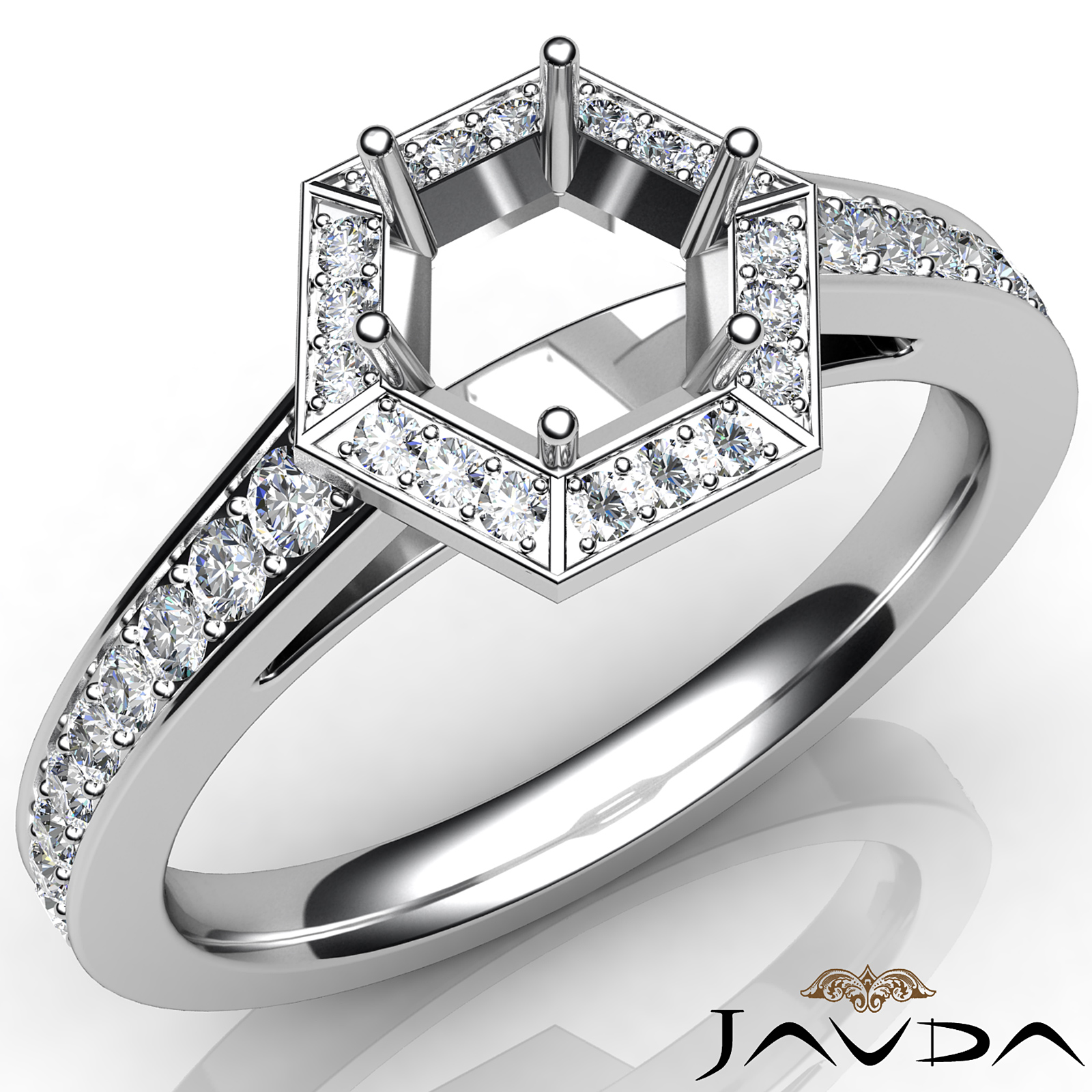 Hexagon Pave Setting Diamond Engagement Round Semi Mount Ring Platinum (0.5Ct. tw.)