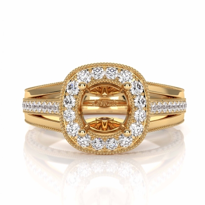 Halo Pre-Set Diamond Engagement Round SemiMount Millgrain Ring 14k Gold (0.9Ct. tw.)