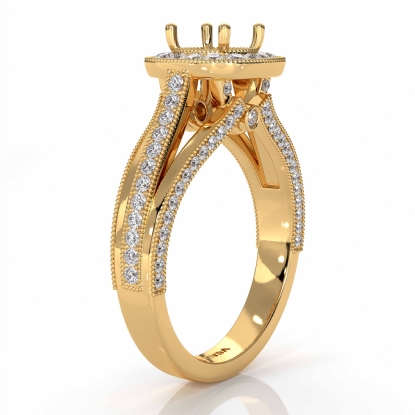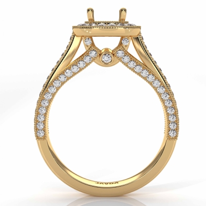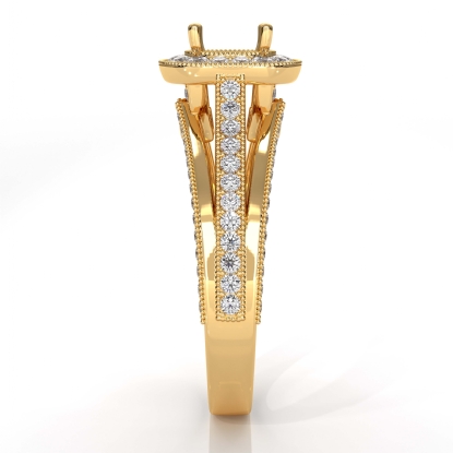 Side 0.90 ctw. Round Diamond Round Diamond Women Engagement & Anniversary Solid Millgrain Ring made in 14k Gold Yellow. Diamonds are set in Halo Pre-Set for Round Cut in a Semi Mount. (0.9Ct. tw.)