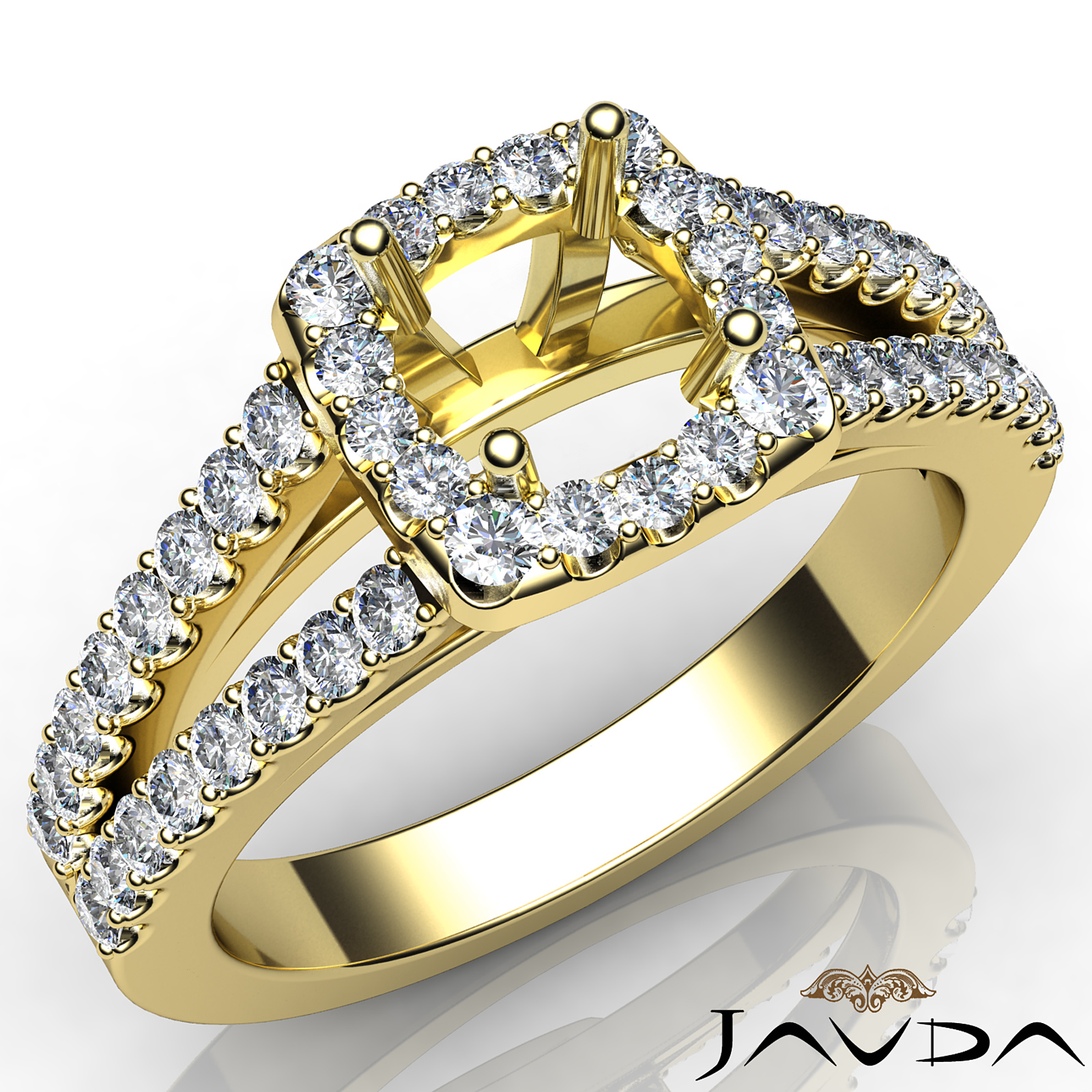 Side 0.75 ctw. Round Diamond Gorgeous Round Diamond Women Engagement & Anniversary Solid Ring made in 18k Gold Yellow. Diamonds are set in Halo Prong Set for Round Cut in a Semi Mount. (0.75Ct. tw.)