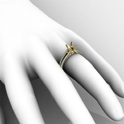 Side 0.65 ctw. Round Diamond Round Diamond Women Engagement & Anniversary Solid Ring made in 18k Gold Yellow. Diamonds are set in Shared Prong Split Shank Setting for Round Cut in a Semi Mount. (0.65Ct. tw.)