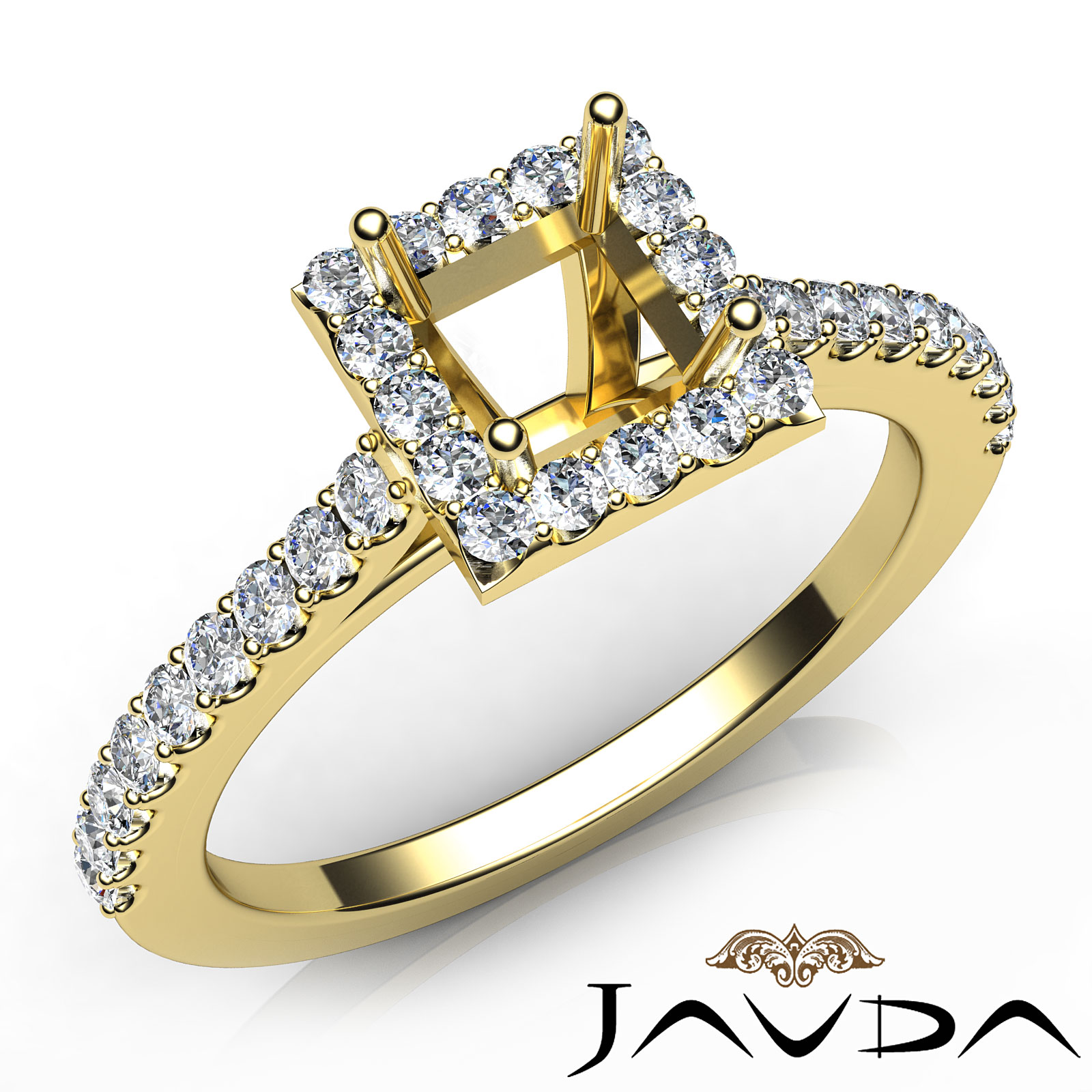 Side 0.50 ctw. Round Diamond Round Diamond Women Engagement & Anniversary Solid Ring made in 14k Gold Yellow. Diamonds are set in U Cut Prong Setting for Princess Cut in a Semi Mount. (0.5Ct. tw.)