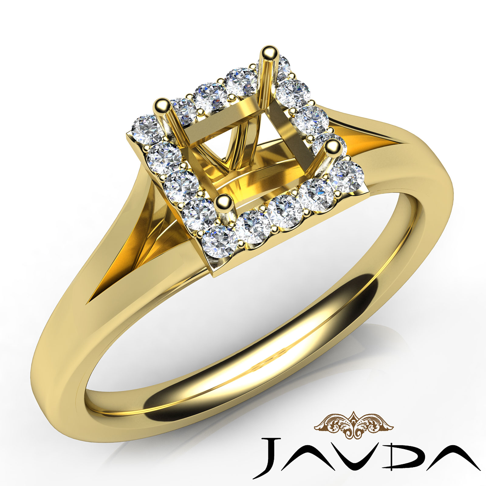 Halo Pre-Set Princess Diamond Engagement Semi Mount Ring 14k Gold (0.2Ct. tw.)
