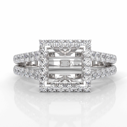 Diamond Engagement Princess Semi Mount 18k W Gold Halo Prong Setting Ring (0.75Ct. tw.)