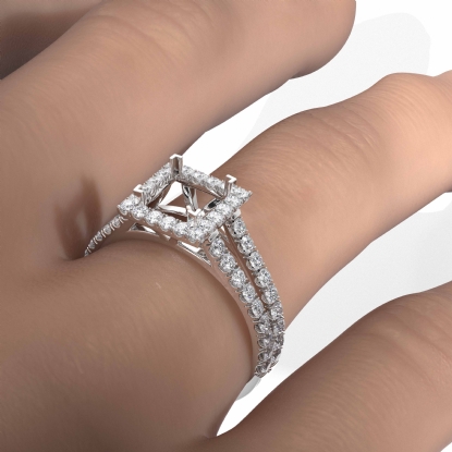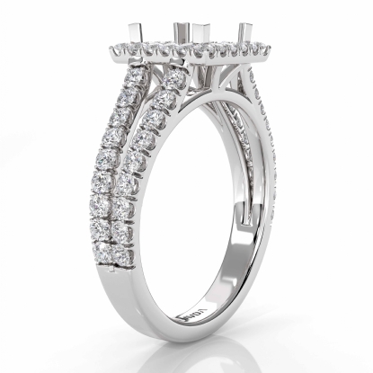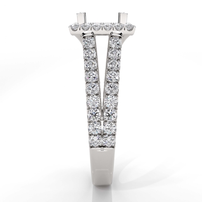Side 0.75 ctw. Round Diamond Round Diamond Women Engagement & Anniversary Solid Ring made in 18k Gold White. Diamonds are set in Halo Prong Setting for Princess Cut in a Semi Mount. (0.75Ct. tw.)