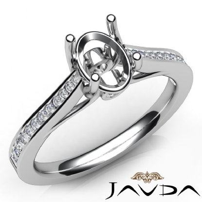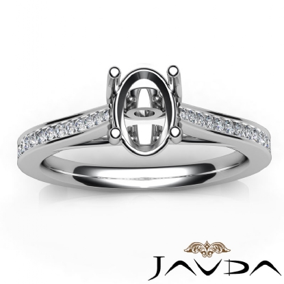 Bezel Channel Setting Diamond Engagement Oval Semi Mount Ring 18k W Gold (0.3Ct. tw.)