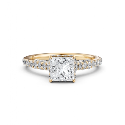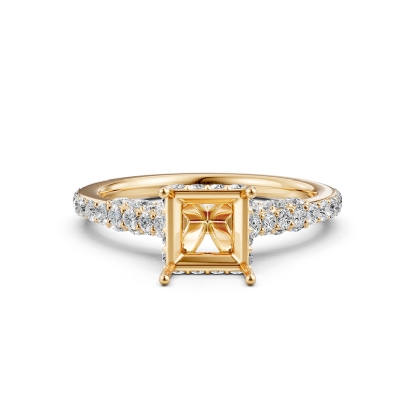 Side 0.65 ctw. Round Diamond Round Diamond Women Engagement & Anniversary Solid Ring made in 14k Gold Yellow. Diamonds are set in Pave Setting for Princess Cut in a Semi Mount. (0.65Ct. tw.)