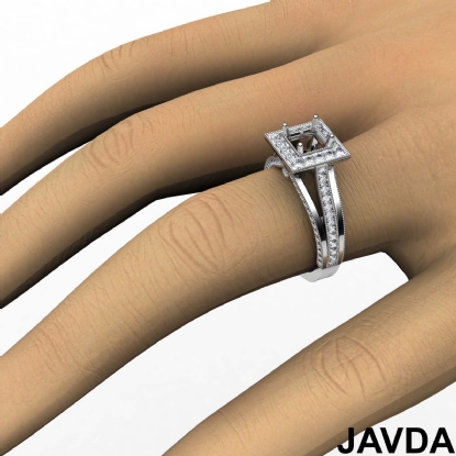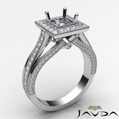 Halo Pave Diamond Engagement Princess SemiMount Millgrain Ring 18k W Gold (0.9Ct. tw.)