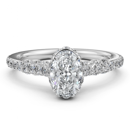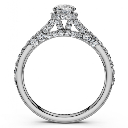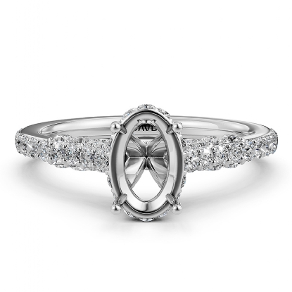 Diamond Engagement Pave Setting Platinum Oval Cut Semi Mount Ring (0.65Ct. tw.)