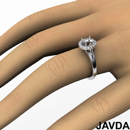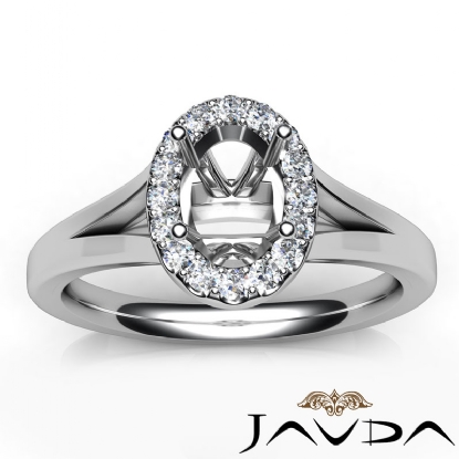 Diamond Engagement Oval Semi Mount Platinum Halo Pave Setting Ring (0.2Ct. tw.)