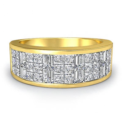 Princess Baguette Invisible Diamond Women Wedding Band 18k Gold (1.5Ct. tw.)