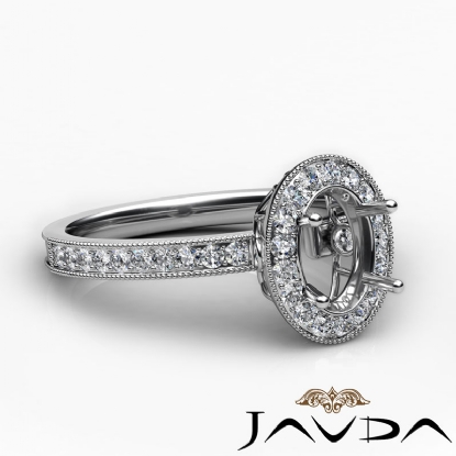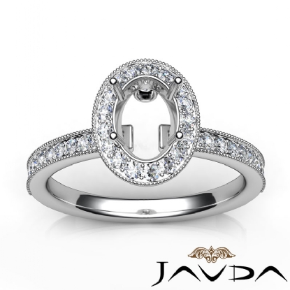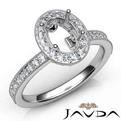 Halo Pave Setting Diamond Engagement Oval Semi Mount Ring Platinum (0.5Ct. tw.)