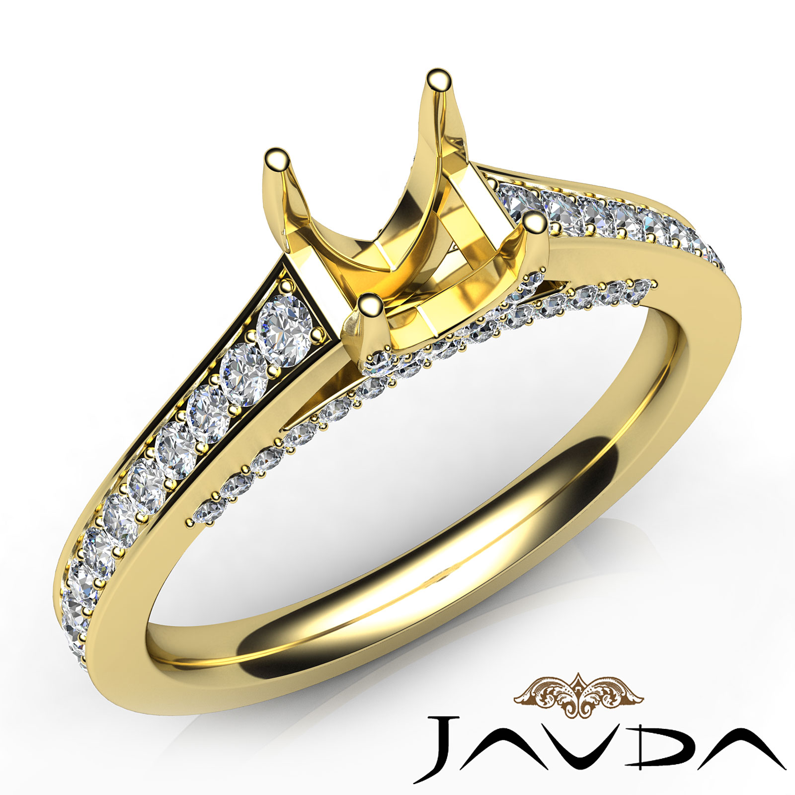 Side 0.75 ctw. Round Diamond Round Diamond Women Engagement & Anniversary Solid Ring made in 18k Gold Yellow. Diamonds are set in Pave Setting for Oval Cut in a Semi Mount. (0.75Ct. tw.)