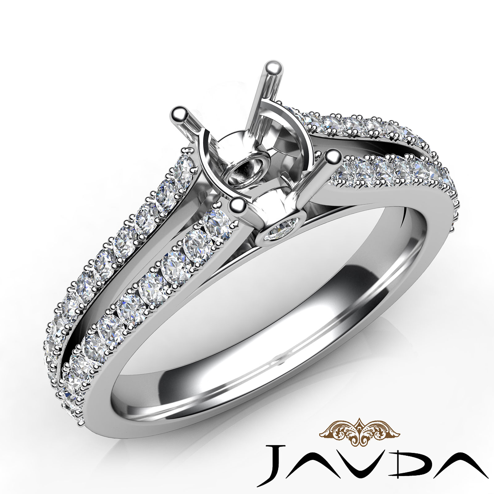 Side 0.65 ctw. Round Diamond Round Diamond Women Engagement & Anniversary Solid Ring made in 18k Gold White. Diamonds are set in Shared Prong Split Shank Setting for Oval Cut in a Semi Mount. (0.65Ct. tw.)