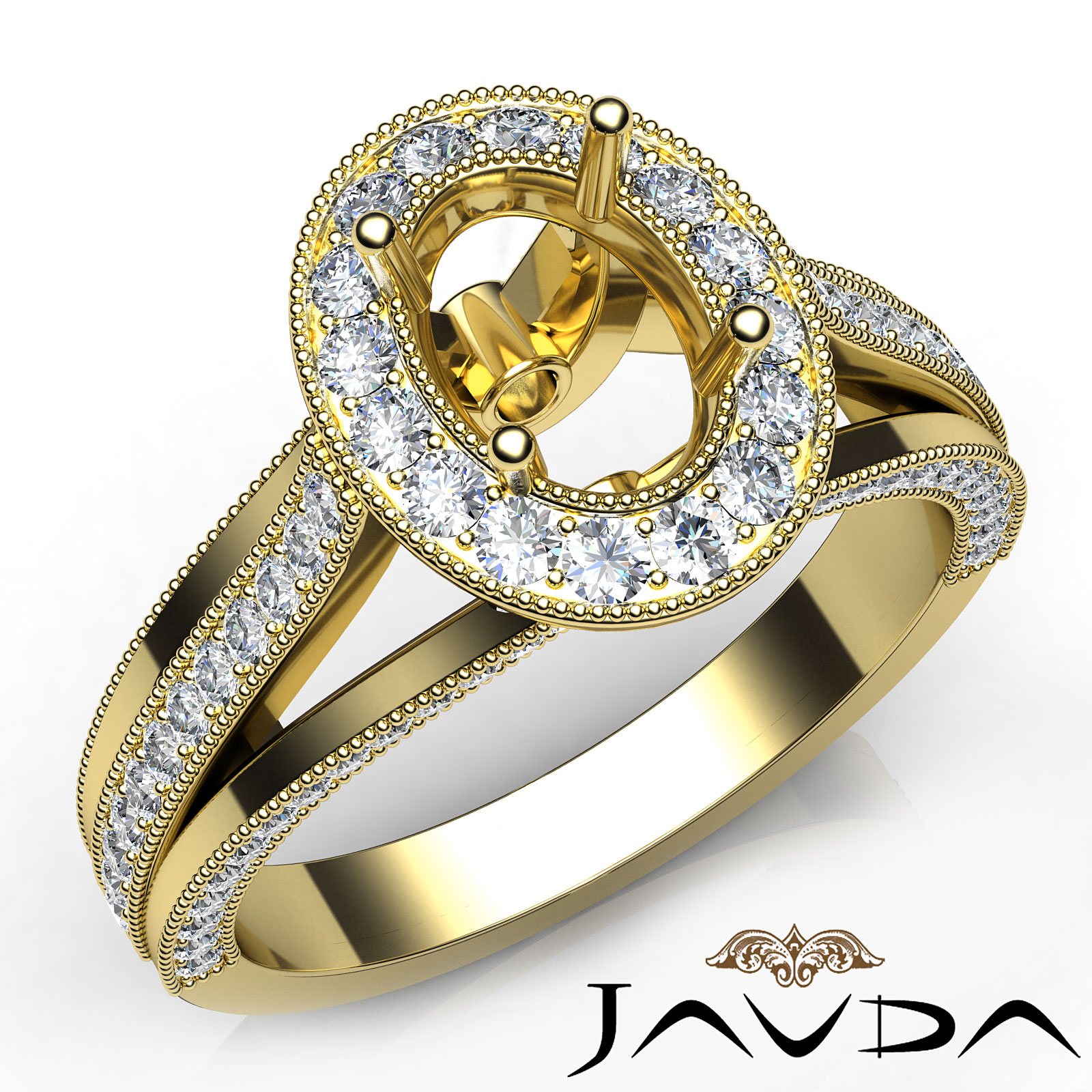 Halo Pre-Set Diamond Engagement 14k Gold Oval Semi Mount Millgrain Ring (0.9Ct. tw.)